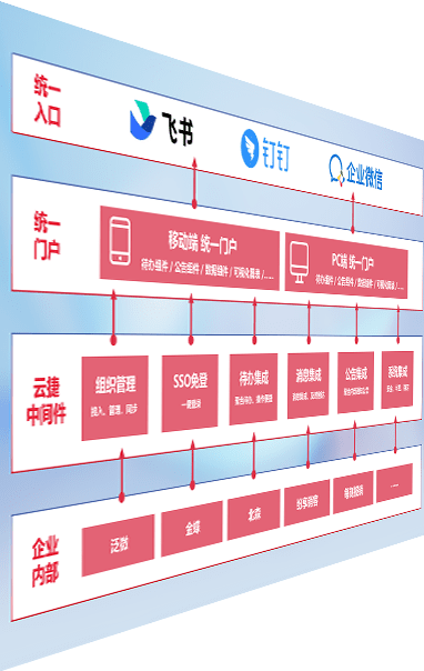 对协作平台提供支持服务,,,支持企业应用与协作平台对接,,,包含组织同步、、、、消息集成、、、、待办集成等。。。。支持目前主流的协作平台:钉钉、、企微和飞书。。